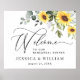 Pancarte de bienvenue pour le dîner de répétition Tournesol Eucalyptus.