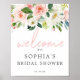 Accueillez vos invités avec cette belle pancarte de bienvenue ! Ce design présente une jolie police de caractères script et de jolies fleurs aquarelles rose clair ! Modifiez facilement avec votre nom, événement et date !