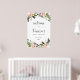 Bienvenue aux invités à votre fête de mariage ou à votre baby shower avec notre affiche Peach Meadow, mettant en vedette de délicates fleurs de couleur pêche et rose pâle et un feuillage botanique vert, avec "Bienvenue à la fête de mariage de [nom]" et la date de l'événement dans un mélange chic de typographies sérif classiques et de calligraphie manuscrite.