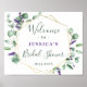 Pancarte de bienvenue pour une élégante douche de mariée à l'eucalyptus.