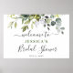 Pancarte de bienvenue pour une élégante douche de mariée à l'eucalyptus.