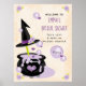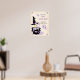 L'amour est dans l'air ! Un panneau de bienvenue pour un enterrement de vie de jeune fille sur le thème d'Halloween, représentant une sorcière de couleur lavande violet clair et noir, est plus doux que terrifiant ! La mariée a jeté un sort sur le futur marié. Un chaudron déborde de cœurs et une cuillère en bois avec un chapeau de sorcière orné de roses violettes. Un fond de type parchemin et le chaudron peuvent être personnalisés avec les initiales et le monogramme de la future mariée et du futur marié. Œuvre © Chrissy H. Studios, LLC. Tous droits réservés.