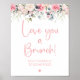 Affiche Pancarte de Brunch de Mariage Floral Rose