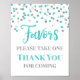 Pancarte de cadeaux pour baby shower, shower de mariage, fête d'anniversaire ou mariage avec un motif de confettis bleu clair et argent. Veuillez noter que l'effet pailleté est un effet photographique uniquement.