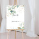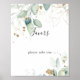 Cette pancarte de faveurs de calligraphie d'eucalyptus doré est parfaite pour un mariage rustique ou une baby shower. Ce design artistique présente un feuillage doré et vert peint à la main à l'aquarelle, inspirant la beauté naturelle.