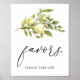 Pancarte de faveurs avec une illustration de verdure et citrons charmants avec le mot "faveurs" dans un script de calligraphie amusant.