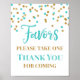 Pancarte de favors pour baby shower, shower de mariage, fête d'anniversaire ou mariage dans un motif de confettis bleu clair et or. Veuillez noter que l'effet pailleté est un effet photographique uniquement.