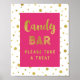Pancarte pour candy bar pour baby shower, mariage ou anniversaire dans un style rose fuchsia vif et blanc avec confettis dorés et texte écrit à la main. Parfait pour une baby shower, un mariage ou une fête de mariage.