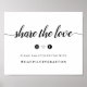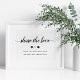 Notre pancarte de hashtag simple et élégante informe vos invités de votre hashtag de mariage personnalisé pour le partage sur les réseaux sociaux. Personnalisez l'en-tête et le hashtag (illustré avec "Partagez l'amour") dans une écriture calligraphique noire nette et des lettres majuscules classiques. Comprend deux icônes de réseaux sociaux reliées par un cœur.