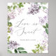 Affiche Pancarte de mariage Rustic Lilac Love Is Sweet
