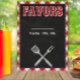 Faites partie de notre collection BBQ Birthday Bash ! Conçue pour les amateurs de barbecue de jardin, cette collection présente des accents de tableau noir, un lettrage à la craie ainsi que le classique vichy rouge et blanc pour ajouter une touche spéciale à votre fête en plein air. Parfait pour les anniversaires de papa, grand-père, un collègue, des amis et de la famille. Prenez de l'avance sur vos décorations et invitations avec cette collection facile à éditer et commandez-les en quelques minutes ! Ces pancartes sont également parfaites pour n'importe quelle fête autour d'un grill comme la fête des Pères, une réunion de famille, une remise de diplôme ou même une célébration du 4 juillet !