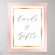 Indiquez à vos invités où déposer leurs cartes et cadeaux avec cette pancarte de mariage rose et or élégante. Personnalisez en ligne sans difficulté. Produits assortis disponibles pour accompagner ce panneau moderne avec une police d'écriture élégante.