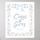 Cette pancarte pour cartes et cadeaux de fiançailles à motif floral bleu aide à guider les invités vers la table des cadeaux de manière jolie et élégante. Les florales douces et le détail du nœud s'harmonisent magnifiquement avec votre suite d'invitation de fiançailles.