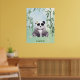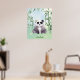 Illustration d'un ours panda mignon noir et blanc assis près du bambou vert aquarelle. C'est un excellent design pour les amateurs de panda ou les fans de super mignons animaux. Les couleurs sont pastel et ressemblent à une aquarelle. Cette impression va égayer la chambre ou la salle de jeux de n'importe quel enfant. Peut être personnalisé avec le nom de votre enfant.