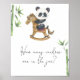 Nous pouvons attendre avec impatience une invitation baby shower. Joli petit ours de panda aquarelle sur cheval de jouet et bambou. Éléments correspondants disponibles.