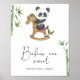 Nous pouvons attendre avec impatience une invitation baby shower. Joli petit ours de panda aquarelle sur cheval de jouet et bambou. Éléments correspondants disponibles.