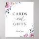 Elégante aquarelle fleurie et cadre feuillu dans les tons tendance bleu, mauve et blanc, affiche "cartes et cadeaux" personnalisées mariage. Le style design typographique moderne mélange le script avec le type bold.