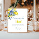 Panneau citron bleu Floral Citrus Lemonade Bar ! Ce panneau magnifiquement conçu présente des citrons jaunes vibrants, des fleurs bleues douces et un script élégant, parfait pour des douches nuptiales, des baby showers, des brunchs ou des fêtes d'été.