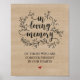 Affiche Panneau commémoratif de mariage aux vignes rustiqu