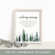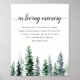 Conçu pour s'harmoniser avec notre collection de mariage Timber Grove, ce panneau chic de la forêt hivernale est idéal pour une table commémorative ou un présentoir honorant les proches disparus. Personnalisez l'en-tête et le corps du texte (illustrés par "En souvenir aimant" et un court poème), accentués d'une bordure inférieure de pins aquarellés dans des tons de vert chasseur et forêt.