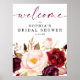 Affiche Panneau d'accueil bohème bordeaux floral pour une