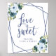 Panneau d'aquarelle florale bleu poussiéreux Love Is Sweet