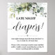 Panneau de Baby shower Eucalyptus tard la nuit Diapers vert. Cliquez sur "Modifier la conception" pour personnaliser ou modifier la mise en page (modifier le libellé, la couleur de police, le style de police ) COMMENT JOUER : Placez le panneau avec des couches et des marqueurs pour que les invités écrivent une note sur une couche pour Parents à être!