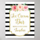 Panneau d'affiche de bar de glace à la crème construisez votre propre sundae dans un motif classique de rayures noires et blanches, fleurs vintage aquarelles roses rustiques et lettrage de style manuscrit or. Parfait pour une baby shower, un anniversaire, un mariage et plus encore.