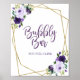 Affiche Panneau de bar floral or violet à aquarelle pétill