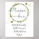 Panneau de bar Mimosa avec une couronne aquarelle de verdure et de fleurs jaunes avec des abeilles bourdonnantes et les mots Bar Mimosa dans un script calligraphique amusant.