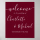 Avec des noms de style de signature, ce panneau de bienvenue rouge de Bourgogne élégant peut être personnalisé avec vos informations en lettrage chic. Conçu par Thisisnotme©