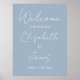 Ce panneau de bienvenue de mariage à l'écriture élégante et minimaliste bleu poussiéreux peut être personnalisé avec vos informations en typographie chic. Conçu par Thisisnotme©