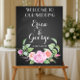Panneau de bienvenue de mariage floral sur tableau noir