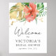 Affiche Panneau de bienvenue de mariage tropical floral
