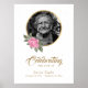 Panneau de bienvenue de photo de funérailles élégant rose et or avec un cadre photo orné de roses roses