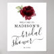 Panneau de bienvenue pour la douche de mariée avec une seule fleur de rose rouge bordeaux aquarelle. Écriture et typographie classique utilisées.