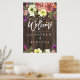Affiche panneau de bienvenue mariage à fleurs de bois rust