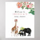 Belles illustrations vintage d'animaux de la jungle et accents de roses florales. Une maman et bébé girafe couverts de roses roses ainsi qu'une maman et bébé éléphant également couverts de roses jaunes. Des roses roses botaniques positionnées dans le coin avec un nom personnalisé au milieu. Personnalisez le nom et faites-en votre propre. Panneau de bienvenue idéal pour un baby shower. Visitez notre boutique pour voir notre collection entière.