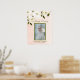 Ce beau panneau de bienvenue funéraire floral élégant représentant une femme avec des fleurs blanches, une photo de votre proche dans un cadre vert, leur nom et dates de vie. Le fond de ce mémorial en souvenir vivant est rose pêche pâle.