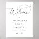 Ce simple et élégant panneau de bienvenue encadré est l'ajout parfait à votre douche de mariée ou à tout événement ! Caractérisé par une élégante écriture calligraphique noire cendrée qui se démarque magnifiquement sur le fond blanc croquant, ce panneau souhaite chaleureusement la bienvenue à vos invités et donne le ton pour une occasion mémorable. Le panneau comprend deux champs de texte personnalisables sous le message « bienvenue », où vous pouvez facilement ajouter le nom et la date de votre événement. Cette touche personnelle garantit que vos invités se sentent spéciaux et ajoute une couche supplémentaire de sophistication à votre décoration.