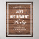 Un panneau de bienvenue pour fête de retraite élégant peut être personnalisé avec les informations de votre événement spécial sur un fond en panneaux de bois rustique. Conçu par Thisisnotme©