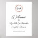Un simple panneau de bienvenue chic à motif floral monogrammé avec feuille d'or rose pour la douche de couple. Facile à personnaliser avec vos informations. Panneau de bienvenue moderne boho pour douche de couple modifiable, personnalisable, police manuscrite calligraphiée, simple, élégant.