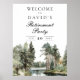Ce panneau de bienvenue élégant et rustique pour la fête de retraite de la forêt lacustre aquarelle peut être personnalisé avec vos informations en typographie moderne. Conçu par Thisisnotme
