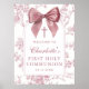 Ce joli panneau de bienvenue pour la première communion présente un élégant nœud rose et une typographie stylée avec un fond floral. Conçu par Thisisnotme©