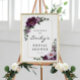 Accueillez vos invités avec ce magnifique panneau de bienvenue ! Ce design présente une belle police script ! Modifiez facilement avec votre nom, événement et date ! Découvrez tous nos articles assortis dans la collection Pivoines prune !