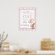 Ce panneau de bienvenue pour le 1er anniversaire charmant présente un adorable bébé lapin tenant des ballons, et un fond à carreaux rose. Conçu par Thisisnotme©