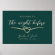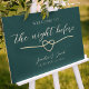 Accueillez vos invités avec style grâce à ce panneau de dîner de répétition vert émeraude élégant, doté d'une calligraphie romantique et d'un cœur de corde dorée. Un accueil magnifique et intemporel pour votre célébration de la "veille". Personnalisez avec les noms et la date pour une correspondance parfaite avec votre suite de mariage.