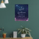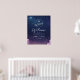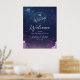 Accueillez vos invités à une soirée de magie et de romance avec ce panneau de bienvenue de mariage céleste. Avec un ciel étoilé profond de couleur bleu nuit et violet, des nuages doux et un monogramme délicat de tourtereaux en haut, ce design donne le ton de rêve pour votre célébration. Parfait pour les mariages sur le thème de l'observation des étoiles, du cosmos ou de la romance, ce panneau encadre magnifiquement vos noms et la date de votre mariage. Personnalisez facilement le texte pour créer une première impression saisissante pour votre jour spécial sous les étoiles.