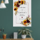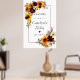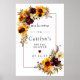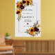 Conception florale élégante d'automne composée de fleurs d'automne - tournesols jaunes, roses rouges, pivoines violettes et hydrangeas blancs - toutes nichées dans des feuilles d'automne. Belle et élégante façon de souhaiter la bienvenue aux invités à une fête prénuptiale d'automne. Ce modèle DIY fait partie de la collection Tournesol et Bourgogne qui vous aide à créer facilement une fête prénuptiale unique et personnalisée. Vous devriez voir un lien vers celle-ci sur cette page. Si vous ne voyez pas le lien ou si vous avez besoin d'aide pour un article, veuillez me contacter.