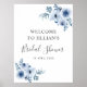 signe de baby shower de mariage de fleur de bohème bleu poussiéreux. Le texte et les couleurs peuvent être modifiés.